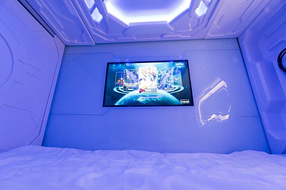 Capsule stays come in a range of options: Capsule, Single, No Window; Capsule, Single; Capsule, Queen, No Window; Capsule Double Room; and Capsule Suite Double Room. For those seeking a touch more space, Deluxe, 1 Bed and Budget, 1 Bed options are also available, each around 35 square feet. Designed for two adults, these capsule-style and compact rooms offer a practical, budget-friendly pick for solo travelers or couples.